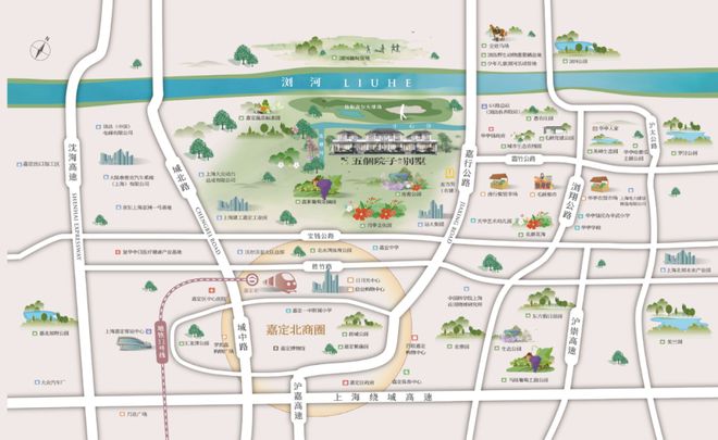 项目周边就有全进马场、浏岛生态科普馆、浏河少儿营地、愚农庄园以及建设中的农居花巷等一系列微度假、轻户外配套。